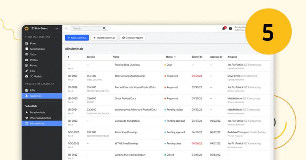 - Approval Workflows: Automated routing for submittals, change orders, and RFIs reduces manual chasing and speeds up decision-making.
