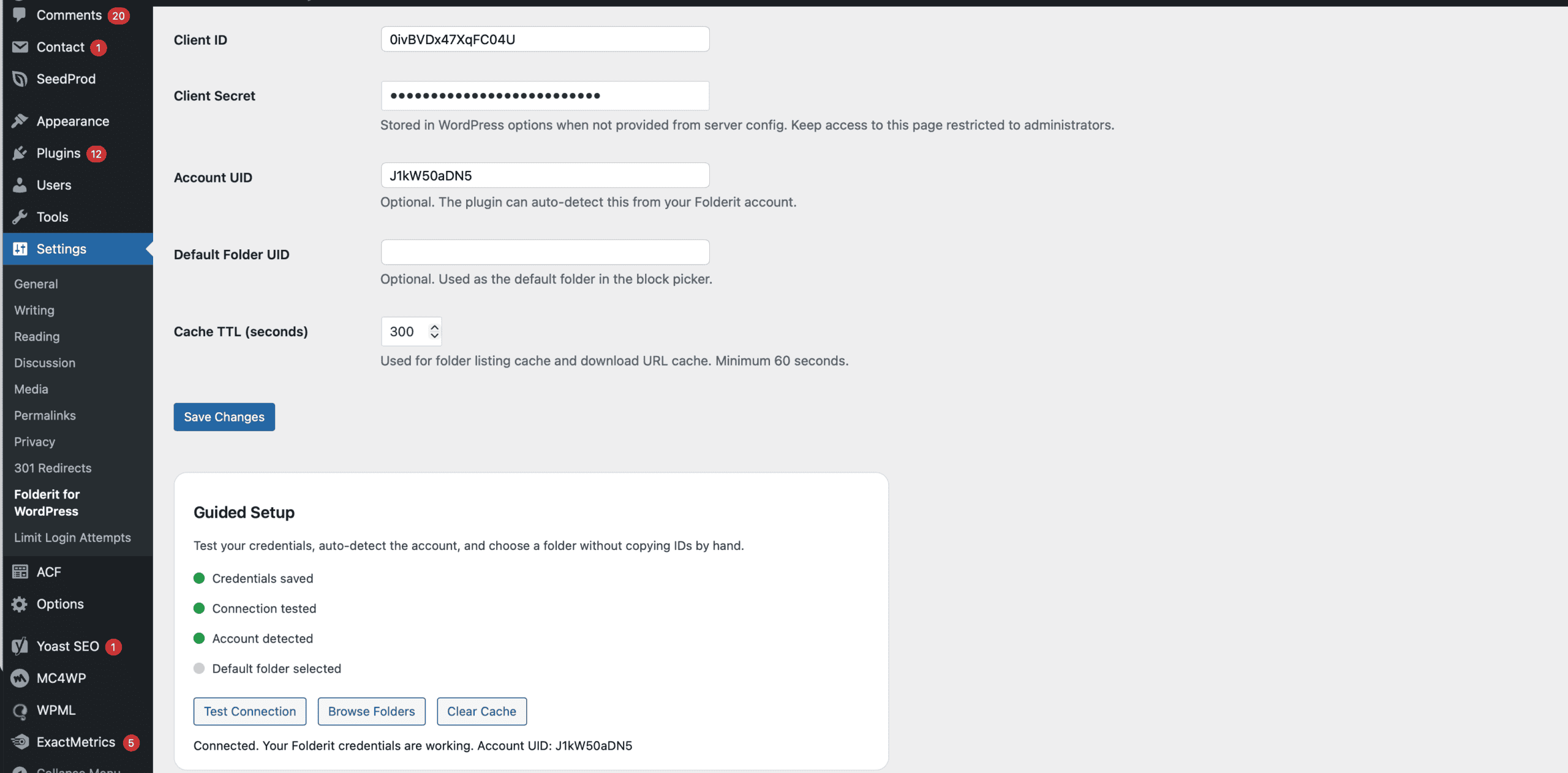- Open Settings > Folderit for WordPress
